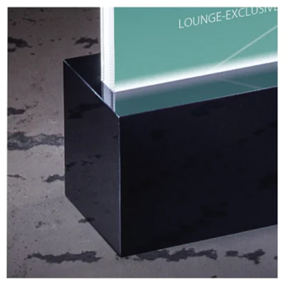 Der LED-Tischaufsteller lenkt die Aufmerksamkeit von Gästen und Besuchern auf Ihr Angebot. Dabei setzt die Beleuchtung im Sockel Ihre Information attraktiv in Szene. Der praktische Kipp-Schalter auf der Sockelunterseite aktiviert und deaktiviert die LED-Leuchtwirkung. Flexibel und mobil einsetzbar.