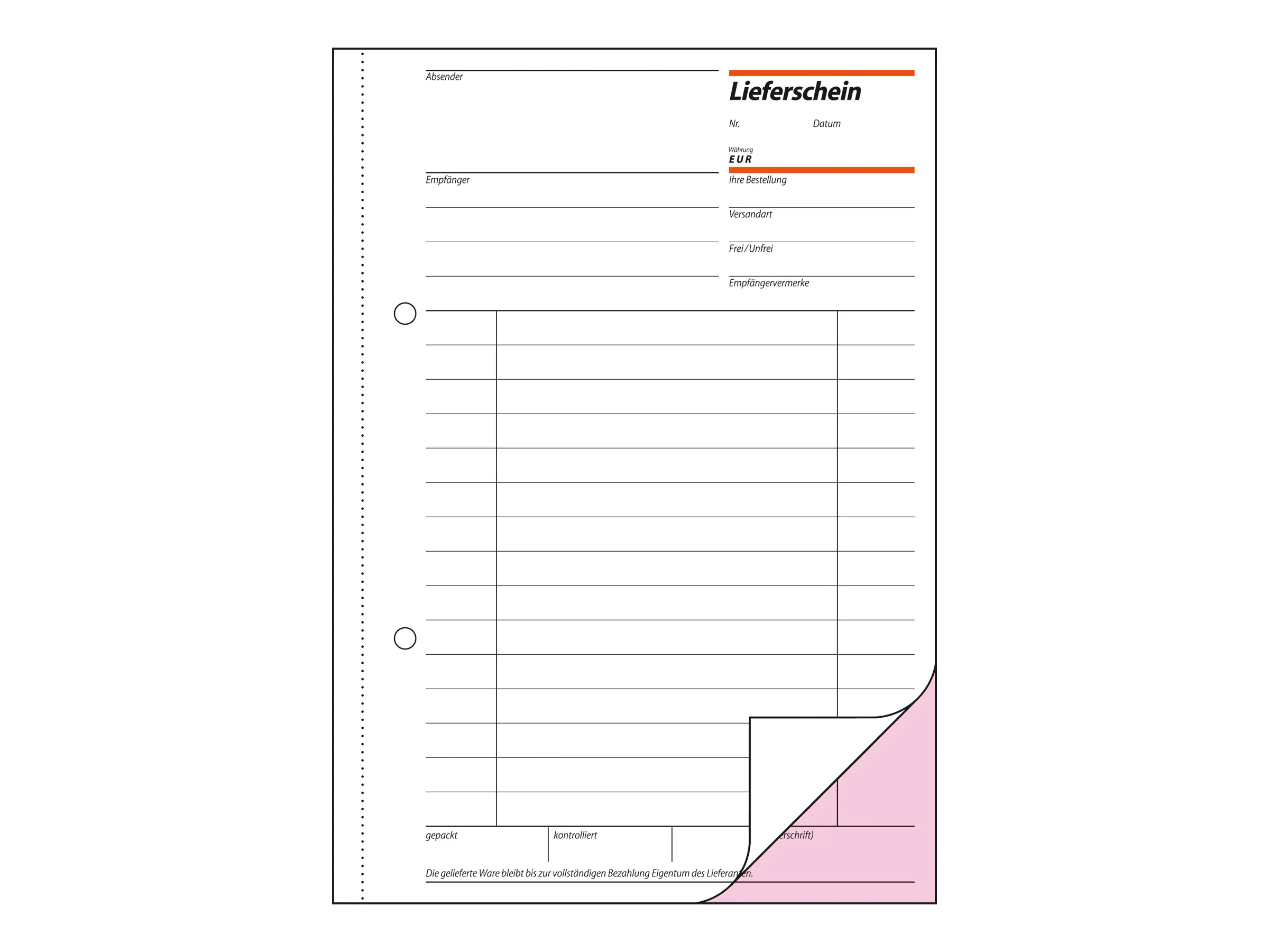 - Mit Empfangsschein, 1. und 2. Blatt bedruckt