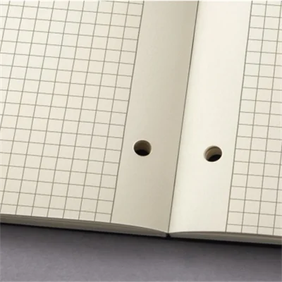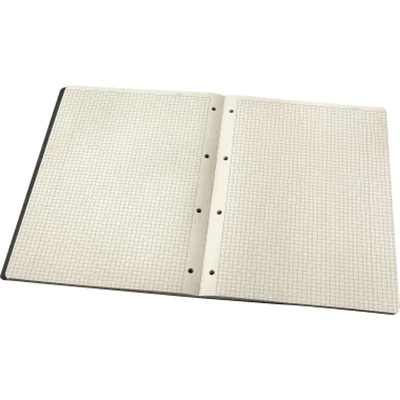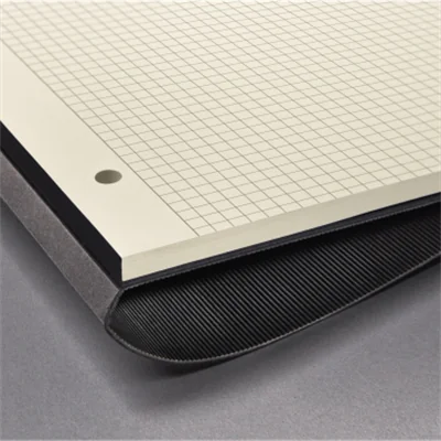 Einband mit geriffelter Oberfläche. Flexibler Buchrücken zum einfachen Umschlagen des Covers (Bindung nicht mit dem Buchrücken verbunden).