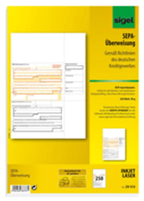 SIGEL Überweisung ZV572 DIN A4 für InkJet/Laser-Drucker 250 Bl./Pack.