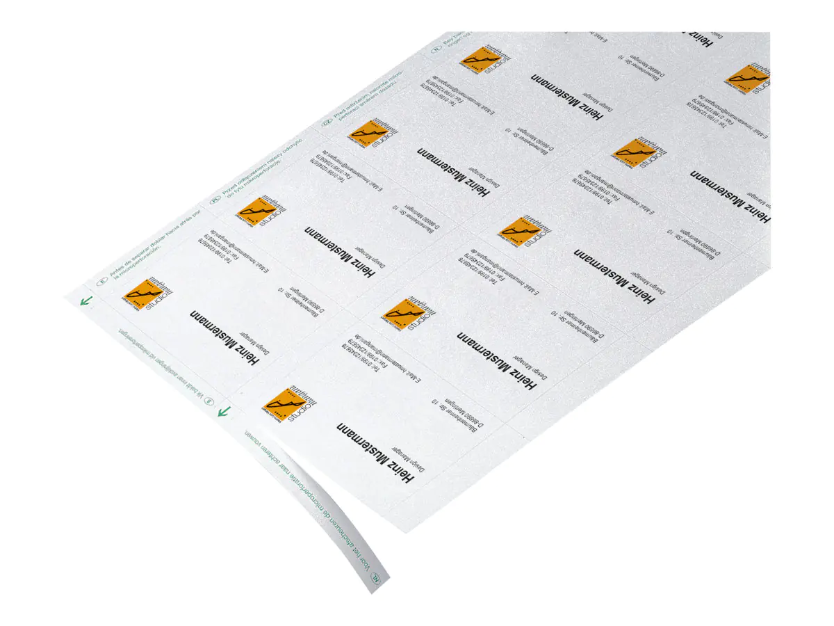 PC-Visitenkarten hochweiß, satiniert, mit einer Grammatur von 200 g/m2, FSC -zertifiziert, sind ideal zum schnellen und einfachen Gestalten und Drucken am eigenen PC und Drucker. Die ultra-feine Microperforation garantiert ein leichtes Abtrennen und exakte Kanten fast wie geschnitten. Die Visitenkarten sind vielseitig einsetzbar beispielsweise für Events, Messen oder geschäftlichen und privaten Kontaktaustausch. Für alle InkJet- und (Farb-)Laser-Drucker sowie Kopierer geeignet. In der Packung sind 15 Blatt DIN A4 bzw. 150 Karten im Format 85x55 mm enthalten.