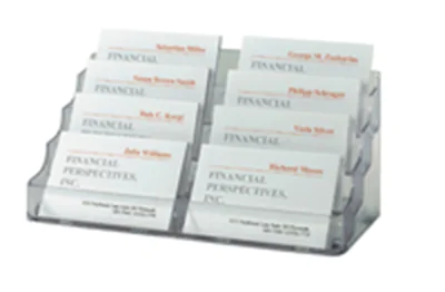 Zur besonders platzsparenden Präsentation und schnellen Entnahme von verschiedenen Visitenkarten. Dank transparenter Gummifüße standfest und rutschsicher.