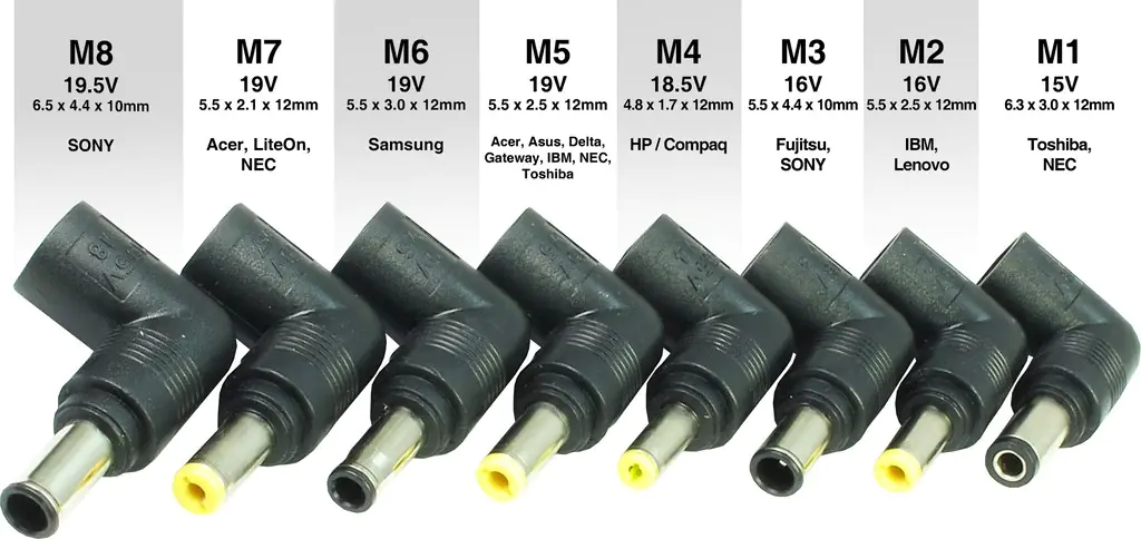 Lieferumfang: | 8 Notebook Stecker zur Stromversorgung | |
