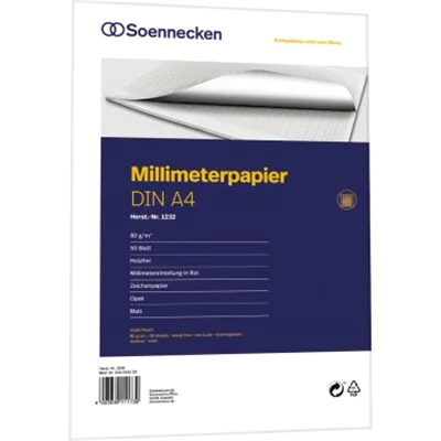Soennecken Millimeterblock 1232 DIN A4 Bücherpapier 50Blatt rot