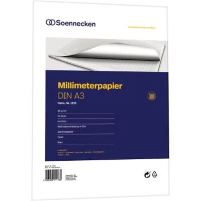 Erstklassiges, matt opakes Zeichenpapier. Einteilung 1 mm.