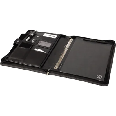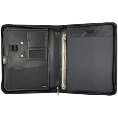- Dokumentenfach, gepolstertes Tabletfach, flexible Multifunktionsbänder, sechs Kredit-/ Visitenkartenfächer, zwei flexible Einsteckfächer, zwei SD-Kartenfächer, herausnehmbare Ringmechanik