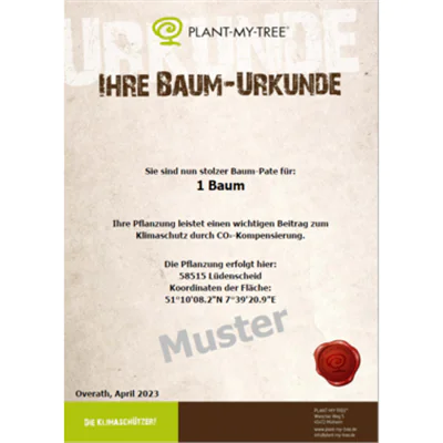 - Inkl. Baum-Urkunde mit Baum-Nummer sowie Pflanz-Koordinaten als pdf