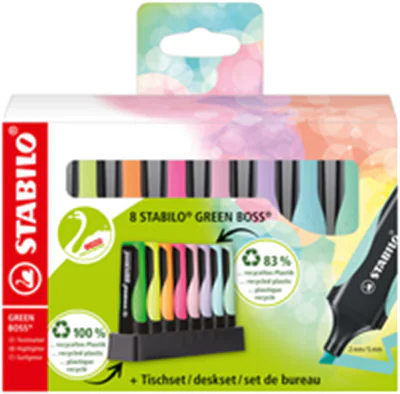 STABILO Textmarker GREEN BOSS 6070/08-5 sort. 8St. +Tischset