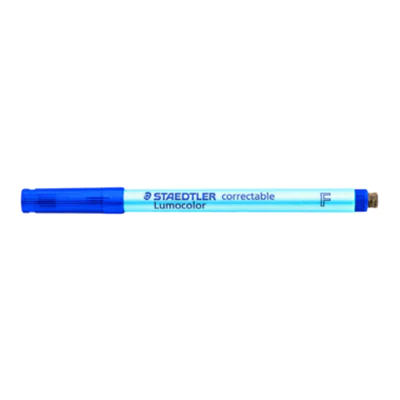 Der neue Lumocolor correctable® ist nur auf glatten Oberflächen abwischbar und ideal für alle in Schule und Ausbildung verwendeten Folien, wie Schreibfolien, Sichthüllen, Laminate und Schülertafeln. Mit Hilfe des Wischers lassen sich Fehler jederzeit trocken und sauber korrigieren. Kappe mit Abrollsicherung.