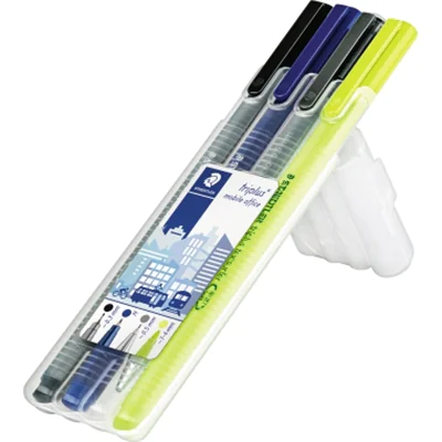 Das kleine Büro für unterwegs. Mit diesem Sortiment in der aufstellbaren STAEDTLER Box hat man immer und überall den passenden Stift griffbereit.