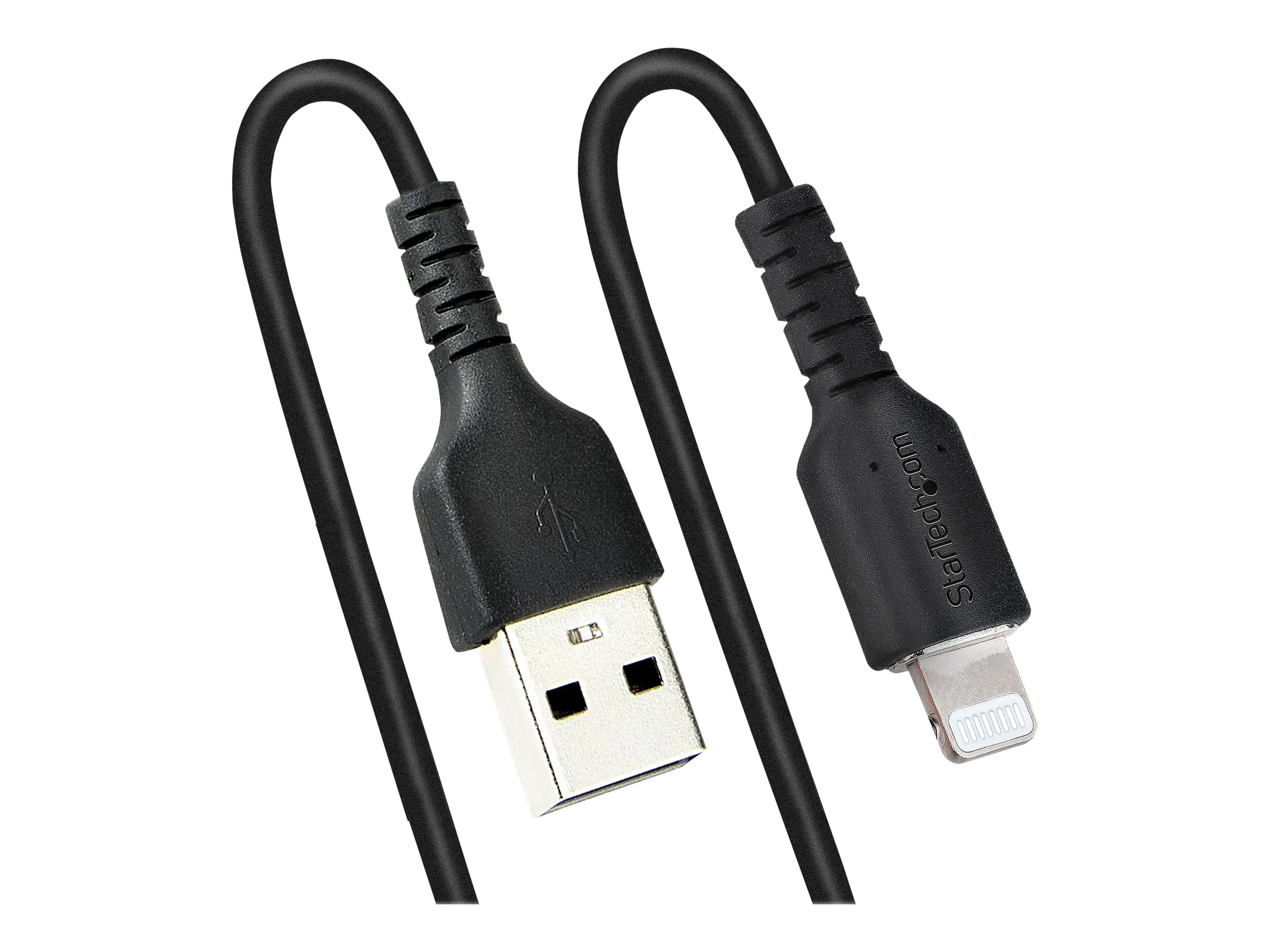 StarTech 1m USB auf Lightning Kabel, Spiralkabel, MFi zertifiziert, Schnellladekabel für iPhone/iPad, Schwarz, robuster TPE Mantel mit Aramidfaser, USB 2.0 Kabel (RUSB2ALT1MBC) - Lightning-Kabel - USB männlich zu Lightning männlich - 1 m - Schwarz - gewic