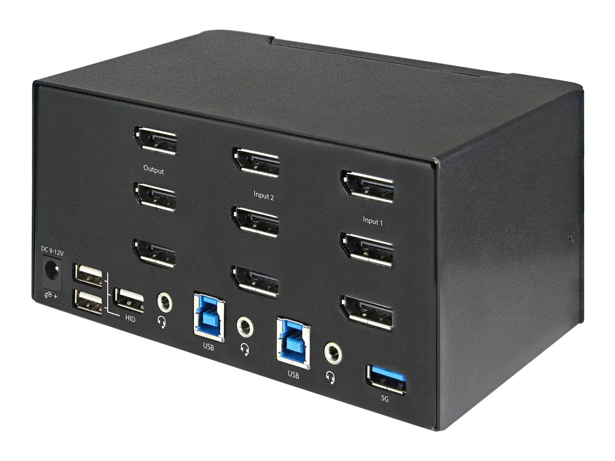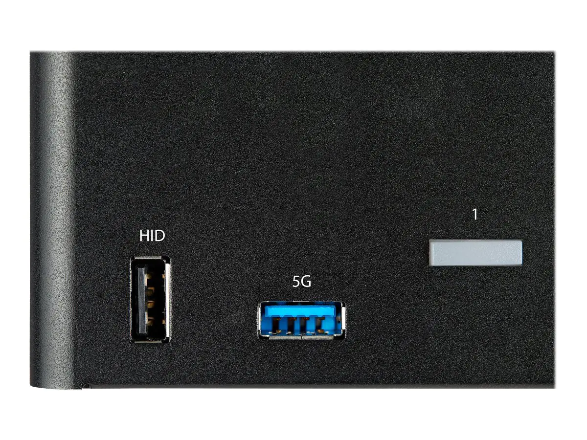 - TECHNISCHE DATEN: KVM mit 2 Anschlüssen | Dreifach-Display | DisplayPort 1.2 | 3840 x 2160 60 Hz | HDCP 2.2 | HDR Support | USB 3.0 Hub mit zwei Anschlüssen | 4x USB HID | Tastenkombinationen & einzelne Tasten | Betriebssystemunabhängig | Stereo Analog + Digital Audio | DP + USB Konsole