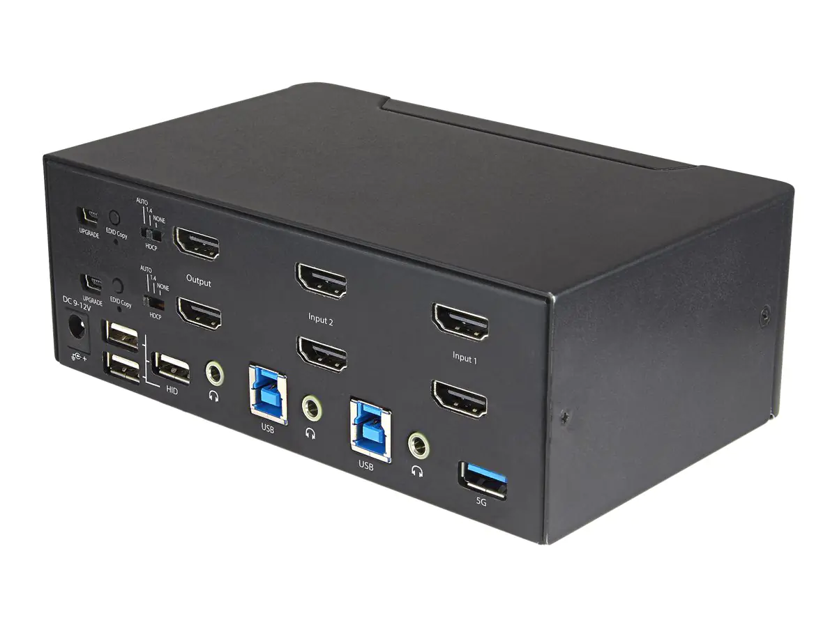 StarTech 2-Port Dual Monitor HDMI KVM-Switch - 4K 60Hz UHD HDR - Desktop 4K HDMI 2.0 KVM-Switch mit 2-Port USB 3.0 Hub (5 Gbit/s) und 4x USB 2.0 HID, Audio - Hotkey-Switching - TAA (SV231DHU34K6) - KVM-/Audio-Switch - 2 x KVM/Audio - Desktop - TAA-konform