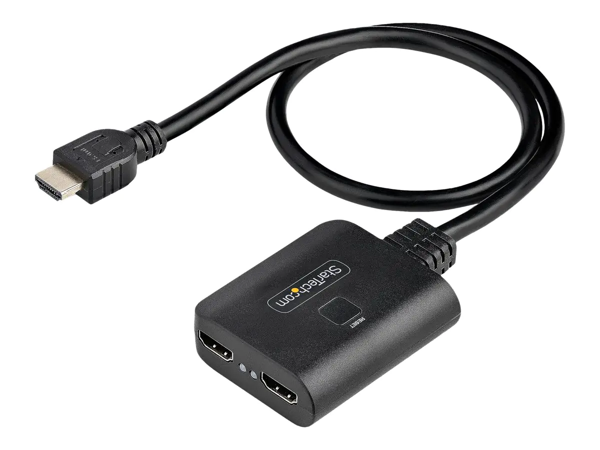 StarTech 2-Port HDMI Splitter, 4K 60Hz HDMI 2.0 Video, 4K HDMI Splitter 1 In 2 Out, 1x2 HDMI Display/Output Splitter, HDR/HDCP - 20in (50cm) Built-in HDMI Cable, Powered via USB or Included Power Supply (HDMI-SPLITTER-4K60UP) - Video-/Audio-Splitter - Des