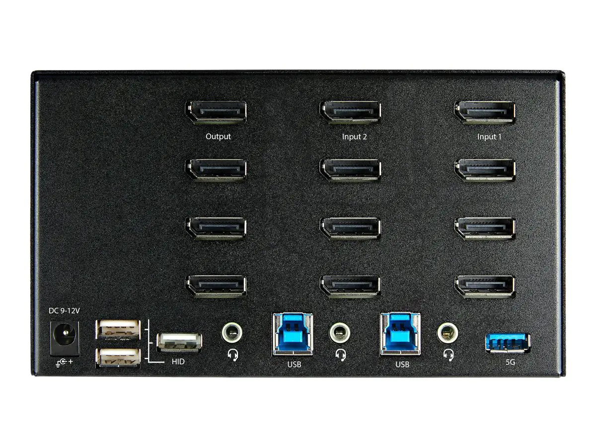 - TECHNISCHE DATEN: KVM mit 2 Anschlüssen | Vierfach-Display | DisplayPort 1.2 | 3840 x 2160 60 Hz | HDCP 2.2 | HDR Support | USB 3.0 Hub mit zwei Anschlüssen | 4x USB HID | Tastenkombinationen & einzelne Tasten | Betriebssystemunabhängig | Stereo Analog + Digital Audio | DP + USB Konsole