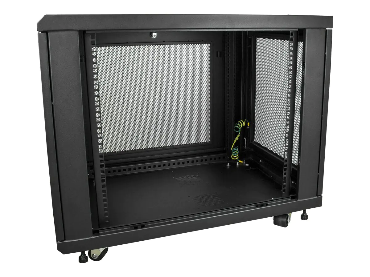 Der Schrank steht auf Rollen, wodurch ein problemloser Zugang zu den rückseitig montierten Geräten ermöglicht wird und er zudem leicht im Büro, Studio oder Serverraum verschoben werden kann. Höhe und Breite des Racks sind außerdem so ausgelegt, dass das Server-Rack durch normale Türrahmen passt und somit problemlos in andere Räume gerollt werden kann.
