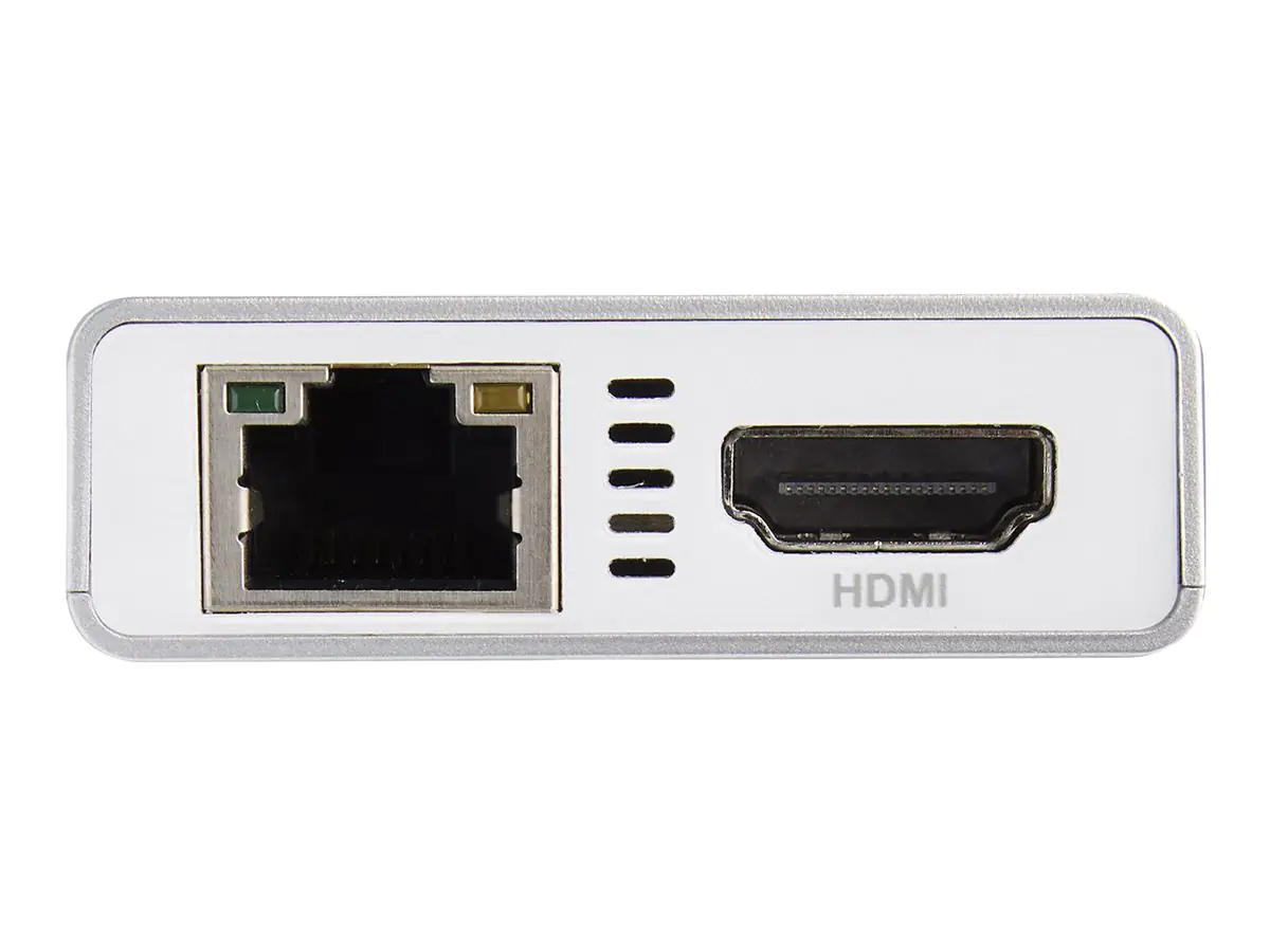 Mit dem USB-C-Adapter können Sie so gut wie überall eine leistungsfähige Workstation einrichten, die eine Videoausgabe in 4K Ultra HD (3840 x 2160p) über HDMI, zwei USB 3.0-Ports sowie einen Gigabit-Ethernet-Port bietet. Sie können darüber hinaus dank USB Power Delivery sowohl den Multiport-Adapter als auch Ihren Laptop gleichzeitig mit Strom versorgen.