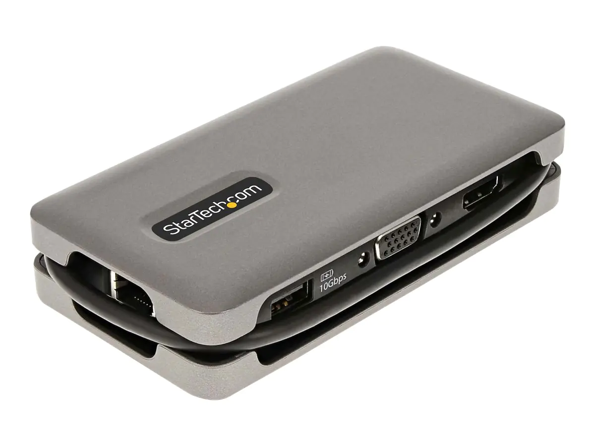 StarTech USB-C Multiport Adapter, HDMI/VGA, 4K 60Hz Video, 3-Port USB Hub, 100W Power Delivery Pass-Through, GbE, USB Type-C Travel Dock w/ Charging, 1ft/30cm Wrap-Around Cable - Mini Laptop Docking Station (DKT31CVHPD3) - Dockingstation - USB-C - HDMI, V