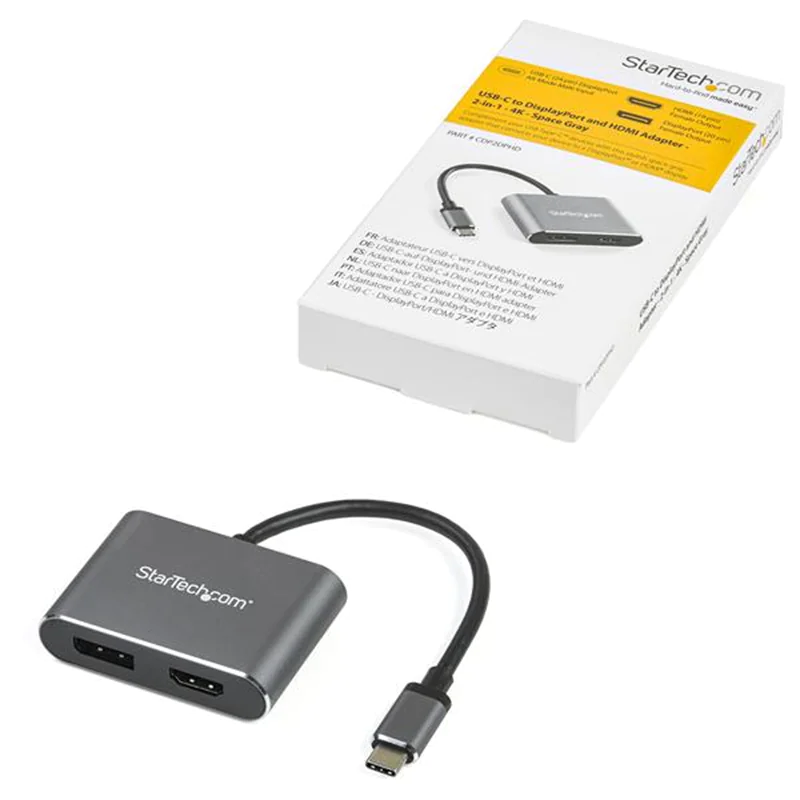 StarTech.com CDP2DPHD USB-C-Multiport Adapter (4K 60Hz UHD, 2-in-1 USB Typ C auf HDMI/DP Display oder Monitor) - Videoadapter - USB-C männlich zu HDMI, DisplayPort weiblich - 20.5 cm - Space-grau - 4K Unterstützung, aktiv