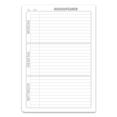 Hausaufgabenheft mit Stundenplan und Wocheneinteilung für 48 Wochen. Hochwertiger, stabiler Umschlag, lackiert. Das Papier ist 100 % recyclebar, tintenfest und radierfähig.