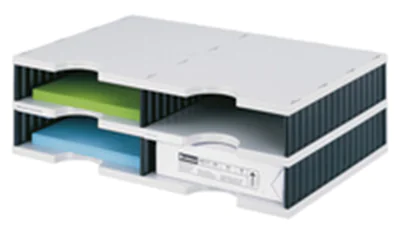 Stabile und flexible Papier- und Dokumentenablage. Vielfältiger Einsatz - verwendbar freistehend auf dem Tisch, Regalen und Schränken oder auch als kleine Drucker- oder Faxstation. Jederzeit erweiterbar durch einfache Steckmontage.