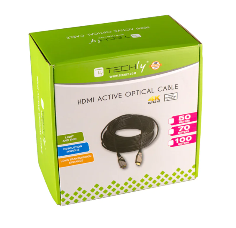 Techly Highspeed - HDMI-Kabel mit Ethernet - HDMI männlich zu HDMI männlich - 15 m - Glasfaser - Schwarz - aktiv, unterstützt 4K 60 Hz (3840 x 2160) | ||||