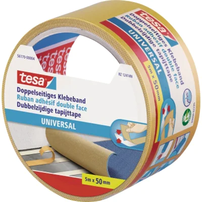 Das tesa® Klebeband Universal ist für eine große Anzahl von Befestigungsanwendungen vielseitig einsetzbar, z. B. beim Verlegen von Teppichen sowie bei Bastel- und Dekorationsarbeiten. Von Hand einreißbar.