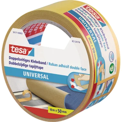 Das tesa® Klebeband Universal ist für eine große Anzahl von Befestigungsanwendungen vielseitig einsetzbar, z. B. beim Verlegen von Teppichen sowie bei Bastel- und Dekorationsarbeiten. Von Hand einreißbar.