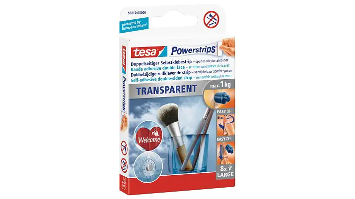 Mit den UV-beständigen tesa Powerstrips® transparent Large lassen sich leichte Dekorationsgegenstände wie Fensterbilder, Papp- und Papierdekorationen schnell und einfach befestigen - besonders geeignet auch auf Glas- und Spiegelflächen, denn der transparente Strip bleibt nahezu unsichtbar im Hintergrund.