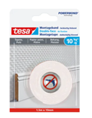 Montagebänder: Für eine besonders starke Befestigung ohne Bohren bietet tesa eine breite Palette an Montagebändern und Doppelklebebändern, die eine dauerhafte und unsichtbare Lösung für das Anbringen von Spiegeln, Bildern und anderen Objekten darstellen.