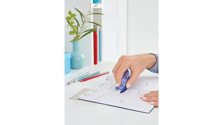 Praktisch und handlich. Trockenes Korrigieren zum sofortigen Überschreiben. Deckt und haftet gut. 2 Klicks genügen, um die Nachfüllkassetten auszutauschen. Handfreundliches, ergonomisches Design.