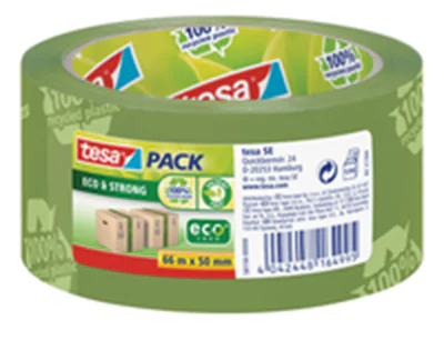 Das robuste und umweltfreundliche Verpackungsklebeband für sicheres Verpacken und Bündeln. Rollenkern aus 100 % recyceltem Karton. Klebemasse aus wasserbasiertem Acrylat.