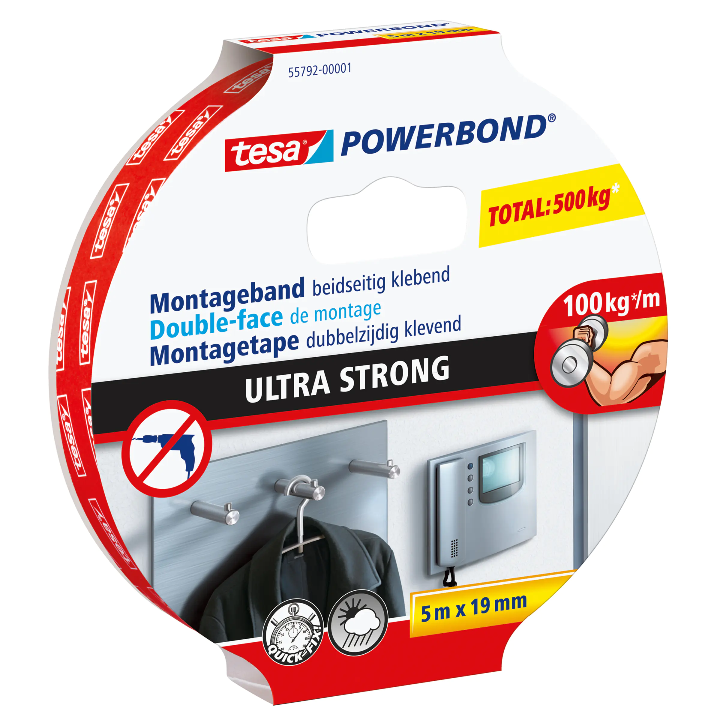 Das Montageband Powerbond® Ultra Strong ist das stärkste Montageband von tesa® und eignet sich zur sicheren Befestigung von Objekten. Klebeleistung von bis zu 10 kg pro 10 cm Montageband, hält pro Anwendung Gegenstände bis 6 kg (bei flachen Objekten bis 10 mm Tiefe und auf den meisten glatten, ausreichend festen Oberflächen).