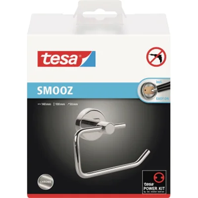 Jedes Badezimmer und jedes Gäste-WC benötigen einen WC-Rollenhalter. Gut, wenn dieser praktisch ist. Noch besser, wenn er auch gut aussieht. Diese Herausforderung meistert der tesa® SMOOZ Klopapierhalter einwandfrei. Er lässt sich dank patentierter Klebetechnologie ohne Bohren anbringen und jederzeit wieder entfernen. Ihre Fliesen bleiben daher unbeschädigt. Mit einem neuen Befestigungsadapter (BK20) können Sie den WC-Rollenhalter sogar wiederverwenden.
