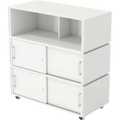 Die rollbare Theke LITTLE PEARL ist ein edles Möbelstück in kompakter Bauweise. Durch das hochwertige Design ergibt sich ein breites Anwendungsspektrum: Ob Infocounter, Verkaufstheke oder Messetheke - wenn es mobil und optisch ansprechend sein soll, ist diese Theke erste Wahl! Die Aussenpaneele sind in verschiedenen Farben erhältlich. Der Grundkorpus und die Topplatte aus Glas sind weiß. Auf der Innenseite bieten 3 Fächer Platz für Ihre Unterlagen. Davon sind 2 Fächer mit abschließbaren Schiebetüren versehen. 4 hochwertige Gelenkrollen lassen die Theke schnell und kinderleicht verschieben. Und damit die alles da bleibt, wo es sein soll, sind 2 Rollen mit einer Feststellbremse versehen.