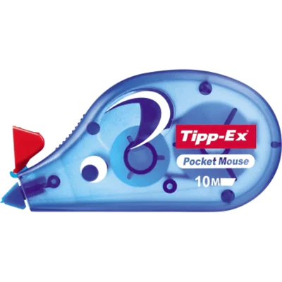 Korrekturroller Tipp-Ex® Pocket Mouse. Reißfestes Polyesterband, bewegliche Spitze für einfaches Auftragen, mit Bandschutzkappe, sofort überschreibbar, präzises Korrigieren.