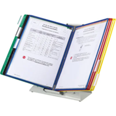 Tischständer A4 grau aus Metall mit 10 Sichttafeln A4 sortiert