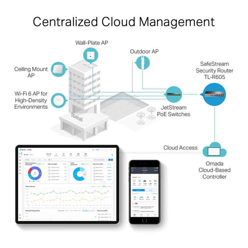 - Im Omada-SDN integriert: Zentralisiertes Cloud-Management und intelligentes Überwachung
