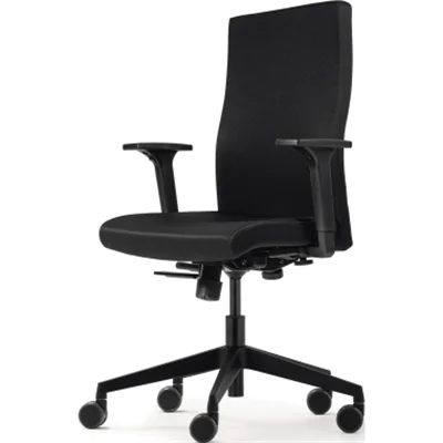 Bürodrehstuhl mit Armlehnen. Hohe Vollpolster-Rückenlehne mit integrierter Lumbalstütze, höhenverstellbar mittels Easy-Touch-System. Synchron-Mechanik mit 3fach arretierbarer Synchronbewegung und stufenlos arretierbarer Federkraftverstellung (frontal) mit großem Öffnungswinkel. Atmungsaktiver Formschaum (PU), FCKW- und CKW-frei geschäumt. Alle Kunststoffteile sind sortenrein, PVC-frei und recyclingfähig. Lastabhängig gebremste Doppellaufrollen. Armlehnen 8 cm höhen- und 7 cm breitenverstellbar.