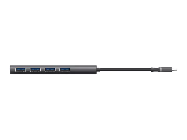 Der elegante Aluminium-USB-Hub erweitert Ihren Computer mit USB-C-Anschluss um 4 zusätzliche USB-A-Anschlüsse mit einer Geschwindigkeit von 5 Gbit/s.
