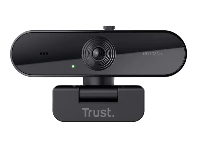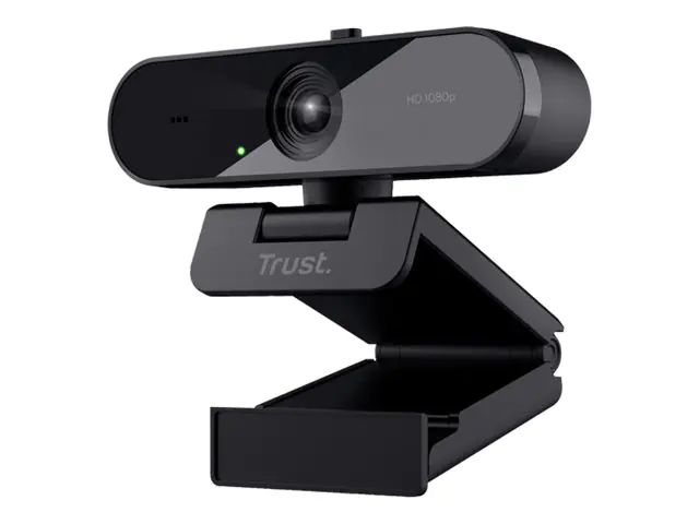 1080p Full HD-Webcam mit Weitwinkelobjektiv, Fernmikrofon und Blickschutzfilter.