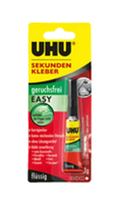 Geruchsfreier Sekunden Alleskleber- einfach zu handhaben. Er bleibt ca. 15 Sekunden korrigierbar (abhängig von Material, Luftfeuchtigkeit und Klebstoffmenge) und hat dadurch die Eigenschaft, dass er bei Berührung mit den Fingern die Haut nicht gleich verklebt. Ohne stechende Dämpfe. Ideal für Materialien mit glatter Oberfläche.