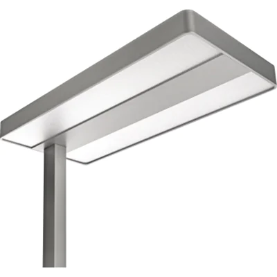 Die LIXUS Stehleuchte kombiniert direktes Licht für die Arbeitsfläche mit indirektem Licht für die Raumbeleuchtung. Nach oben strahlen etwa 60 %, nach unten 40 % der Lichtleistung ab. Das sorgt für eine optimale Lichtstreuung am Büro-Arbeitsplatz. Über einen Drehdimmer am Gestell kann die Lichtintensität an unterschiedliche Tätigkeiten oder wechselnde Lichtverhältnisse im Tagesverlauf angepasst werden.Da die Säule außen mittig am Standfuß platziert ist, kann die Bodenplatte weit unter den Tisch geschoben werden und wird so nicht zur Stolperfalle. Mit den sachlich klaren Linien passt LIXUS in jede Büroumgebung, von klassisch bis avantgardistisch. Dieses Produkt enthält eine Lichtquelle der Energieeffizienzklasse D und kann nicht ausgetauscht werden.