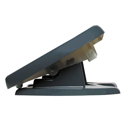 In 3 Stufen höhenverstellbar. Ergonomisches Konzept wurde in Verbindung mit der Arbeitsmedizin entwickelt. Bewegliche Fußauflage mit variabler Neigung, mit Wipp- und Schaukelfunktion, Antirutschbeschichtung.