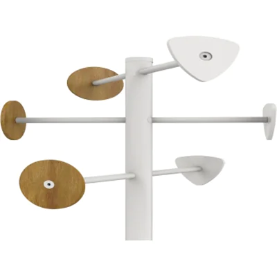 Garderobenständer in angesagter Materialkombination aus schnell wachsendem Bambus und recyclingfähigem Stahl. Kleiderhaken mit abgerundeter Form, drei aus Stahl, drei aus Bambus. Bambus-Elemente unterstreichen das angesagte Neo-Retro-Design. Mit beschwertem Standfuß.