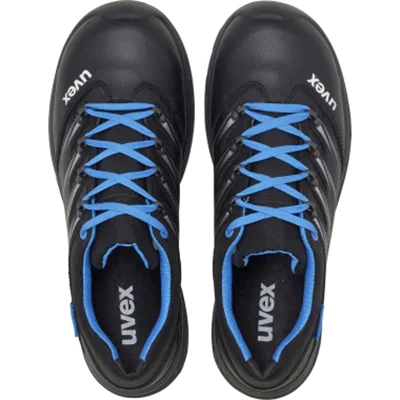 1 Paar schmutzunempfindliche Sicherheitsschuhe, leichtgängiges und hitzeunempfindliches Schnürsystem. Schutz des Obermaterials über der Zehenkappe durch geschäumte Überkappe. Zuverlässiger Schutz für Mensch und Material: durchtritthemmende Stahlzwischensohle, Stahl-Zehenkappe und stabilisierende uvex anti-twist-Hinterkappe. Ergonomisch gestaltete Laufsohle aus Zweidichten-Polyurethan mit sehr guter Rutschhemmung. Reflektierende Elemente für verbesserte Sichtbarkeit. Stets ideales Fußklima dank uvex climazone: besonders atmungsaktive Futter- und Obermaterialien, außerdem Klimakomfortfußbett mit Feuchtigkeitstransportsystem. Angenehm weiches Tragegefühl ohne Druckstellen - mit weich gepolstertem Schaftabschluss und gepolsterter Zunge. Auswechselbares, antistatisches Komfortfußbett mit Feuchtigkeitstransportsystem und zusätzlicher Fersen- und Vorfußdämpfung.