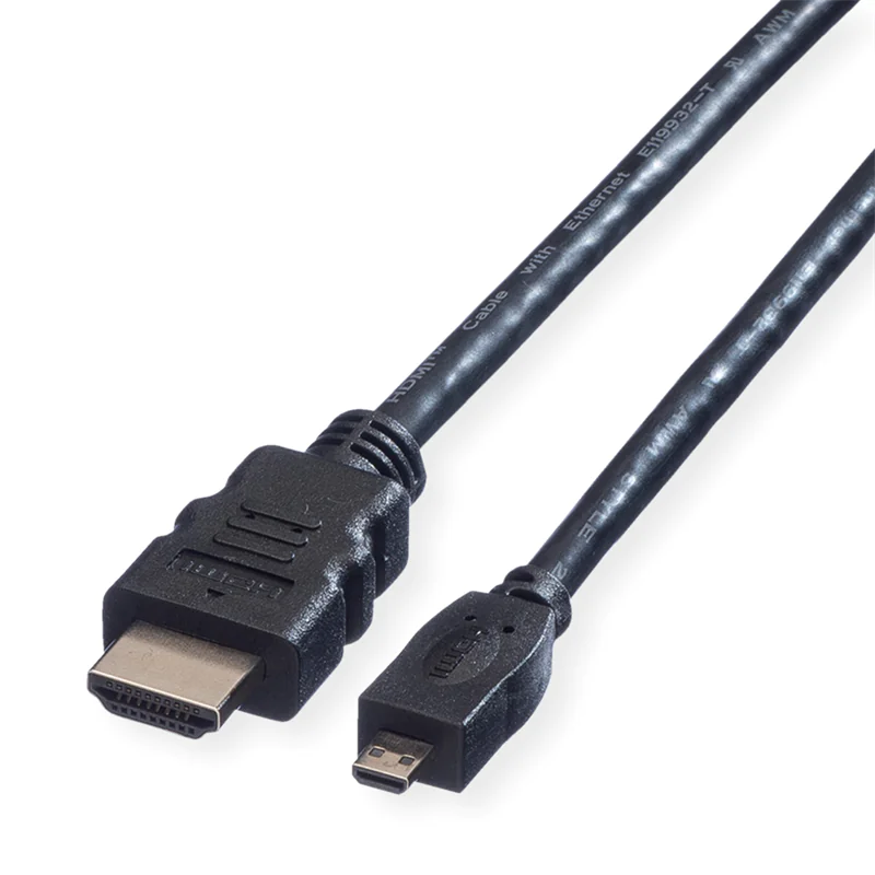 VALUE High Speed - HDMI-Kabel mit Ethernet - HDMI männlich zu mikro HDMI männlich - 2 m - abgeschirmt - Schwarz - geformt