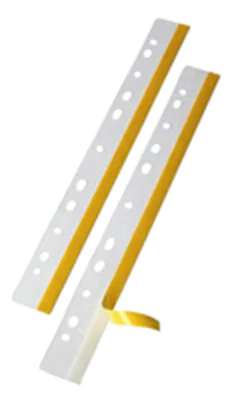 Heftstreifen zum Abheften von Schriftgut, welches nicht gelocht werden darf, aber abgeheftet werden soll, wie z.B. Muster, Urkunden, Broschüren etc.