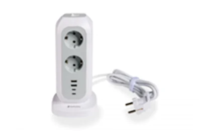 Durch den Verbatim Euro-Steckdosenturm kann eine einzelne Euro-Steckdose um 11 Wechselstromsteckdosen sowie zwei USB-C- und zwei USB-A-Anschlüsse erweitert werden. Dieser Mehrfachsteckdosenturm enthält alle nötigen Steckdosen, damit Ihre Geräte immer geladen und einsatzbereit sind. Durch das platzsparende vertikale Design ist der Steckdosenturm ideal für den Einsatz zu Hause, in der Küche, im Büro oder in der Schule. Schreibtische und Küchenarbeitsflächen bleiben so übersichtlich und aufgeräumt. Zum Energiesparen können Sie die gesamten Steckdosen des Turms mit dem An-/Aus-Schalter auf der Oberseite auf einmal ausschalten, wenn der Turm gerade nicht verwendet wird. Der Steckdosenturm ist mit Sicherheitsabdeckungen zur Kindersicherung ausgestattet, die nur mit einer Kraft von mehr als 75 N (7,5 kg) je Öffnung geöffnet werden können.