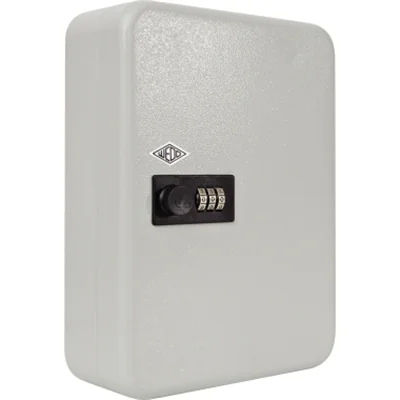 Die kompakten Schlüsselschränke sind mit einem Sicherheitsschloss ausgestattet, das über einen 3-stelligen Zahlencode individuell einstellbar ist. Damit kann auch einer größeren Anzahl von Nutzern der Zugriff gewährt und jederzeit korrigiert werden, ohne dass Schlüssel notwendig sind. Mit mattierter, unempfindlicher Oberfläche. Die feststehenden Hakenleisten können mit den beigefügten selbstklebenden Nummernstreifen gekennzeichnet werden.